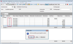 Markieren Sie die zusammengehörigen Buchungen. Ergibt sich für die markierten Buchungen ein Auszifferungssaldo "0,00", erhalten Sie automatisch eine Auszifferungsabfrage. Bestätigen Sie diese mit "Ja". Die so "ausgezifferten" Buchungen werden auf dem OP-Konto nicht mehr angezeigt.