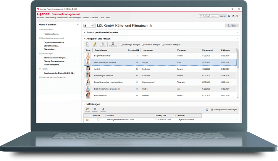 Alle Aufgaben und Termine in einer Übersicht: Die Personalfachkraft hat alle Fristen im Blick, sobald sie Agenda Personalmanagement öffnet.