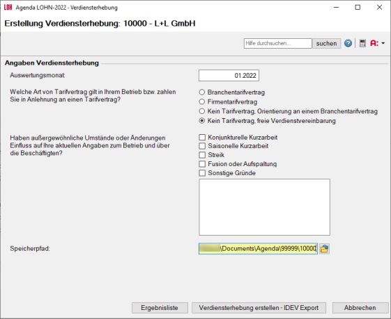 Klick 4: Sie wählen den Speicherort für die Verdiensterhebung aus.