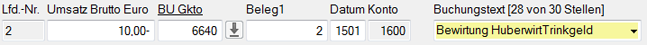 2. Buchung: Trinkgeld der Bewirtungsrechnung i. H. von 10,00 € sind zu verbuchen.