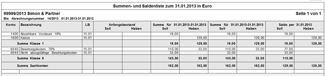 Auswirkung der Buchungen in der Summen- und Saldenliste: