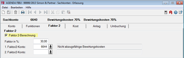 4. Register: Faktor 2 – Berechnung aktivieren und im Feld "Faktor in %" 30,00 erfassen: