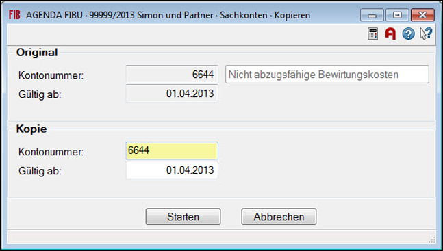 Klicken Sie dann auf das gewählte Konto und drücken die Tastenkombination "Strg+K". Erfassen Sie das gleiche Gültigkeitsdatum wie beim Konto 6640 / 4650 und bestätigen Sie die Eingabe mit "Starten".