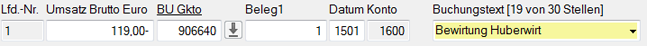 Betrieblich veranlasste Bewirtungskosten sind mit einem abziehbaren Anteil (70%) und mit einem nicht abziehbaren Anteil (30%) zu verbuchen. Die Vorsteuer ist gem. § 15 Abs. 1 a UStG voll abzugsfähig.