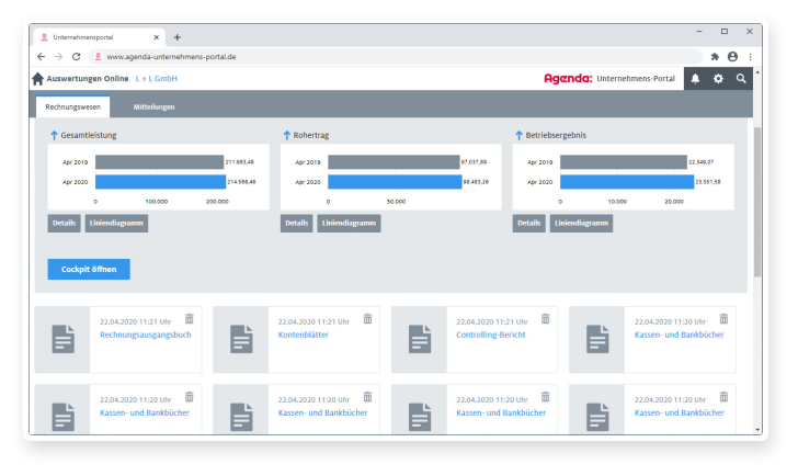 Profitieren Sie mit der Agenda-Cloud von technischer Sicherheit gepaart mit Unabhängigkeit bei Datenzugriff und -transfer. Mit dem Unternehmens-Portal haben Sie jederzeit Einblick in aktuelle Geschäftszahlen – an jedem Ort.