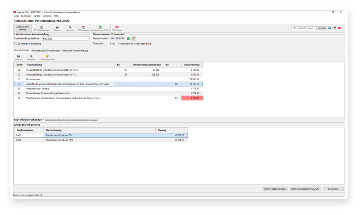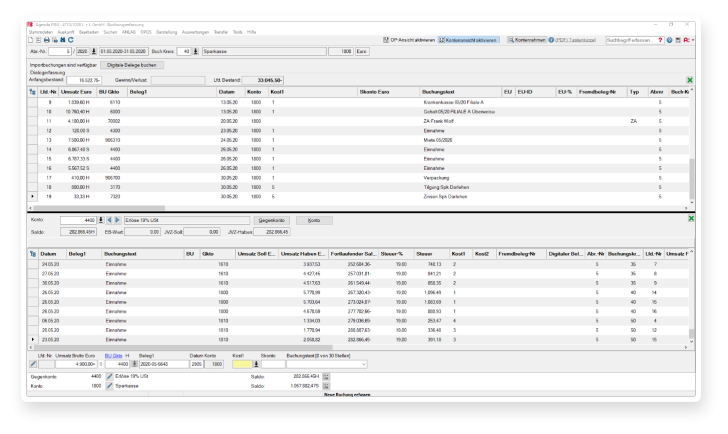 In der Wertekontrolle können Sie alle Beträge detailliert bis zum Buchungssatz nachvollziehen