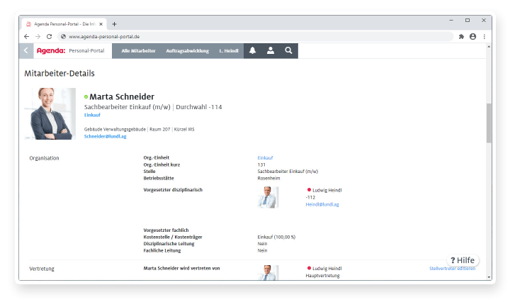 Geben Sie Mitarbeitern und Führungskräften die Möglichkeit, Informationen für ihr Tagesgeschäft schnell und einfach selbst zu finden. Und niemand muss mehr wegen Zuständigkeiten oder Vertretungsregelungen in der Personalabteilung anrufen.